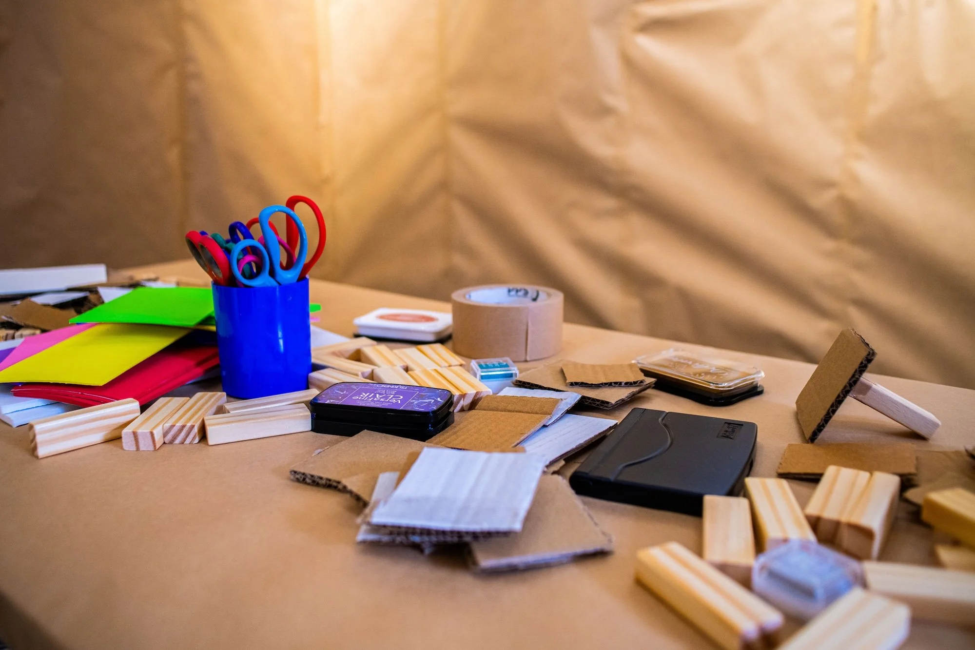 As part of this exhibition-long activity, visitors are invited to contribute to a collective artwork. Using stamps, shapes, and designs, you’ll leave your mark, adding to an installation that keeps evolving.